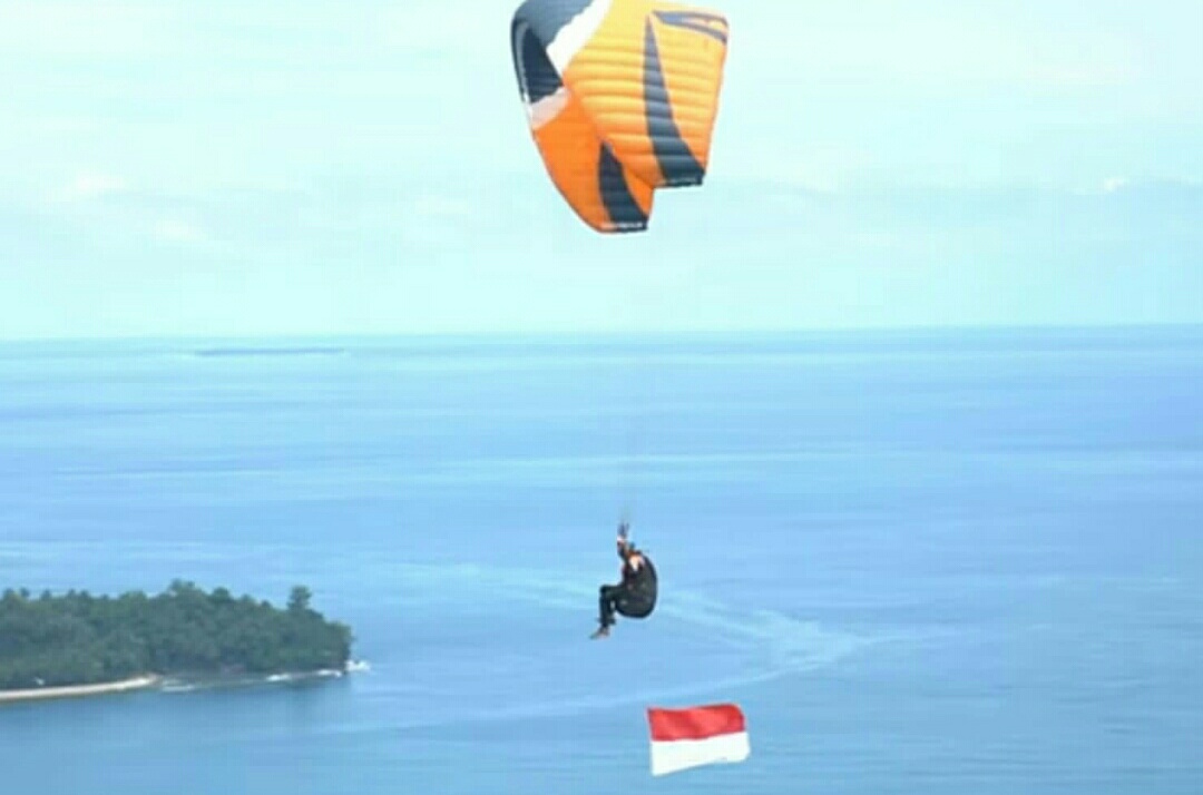 Pengibaran bendera merah putih dilakukan dengan menggunakan paralayang dari Bukit Gado-gado Padang, dipimpin oleh Direktur Lalu Lintas (Dirlantas) Polda Sumbar Kombes Pol Yofie Girianto Putro, S.Ik.