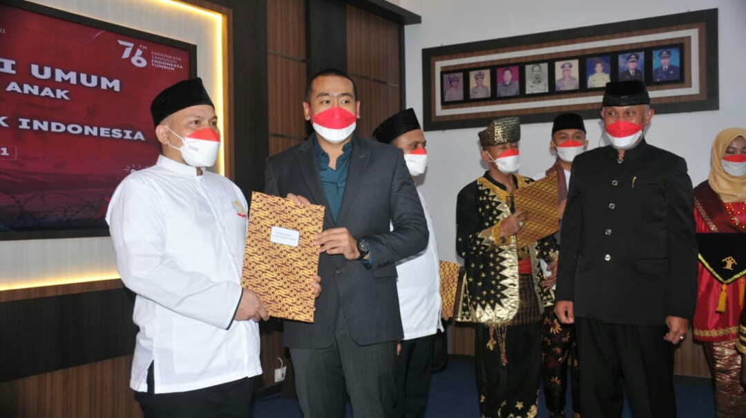 Penyerahan langsung oleh Gubernur Mahyeldi didampingi Wagub dan Kepala Kantor Wilayah Kementerian Hukum dan HAM Sumbar R. Andika Dwi Prasetya.
