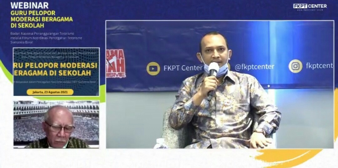 IWOSUMBAR.COM, Padang – Untuk mencegah secara dini paham radikal (radikalisme) maka FKPT Sumatera Barat menggelar Webinar yang bertajuk ‘Guru Pelopor Moderasi Beragama di Sekolah’. WEBINAR diikuti lebih dari 200 peserta terdiri dari para guru agama dan guru umum serta para pengasuh pondok pesantren, pagi hingga siang ini (Senin, 23/8).