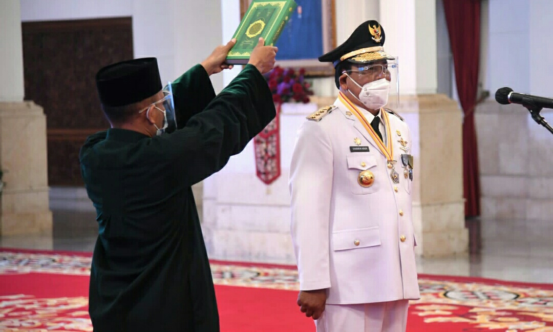 IWOSUMBAR.COM, JAKARTA – Presiden Lantik Sahbirin Noor dan Muhiddin sebagai Gubernur dan Wakil Gubernur Kalimantan Selatan terpilih masa jabatan tahun 2021-2024 di Istana Negara, Jakarta, pada Rabu, 25 Agustus 2021.