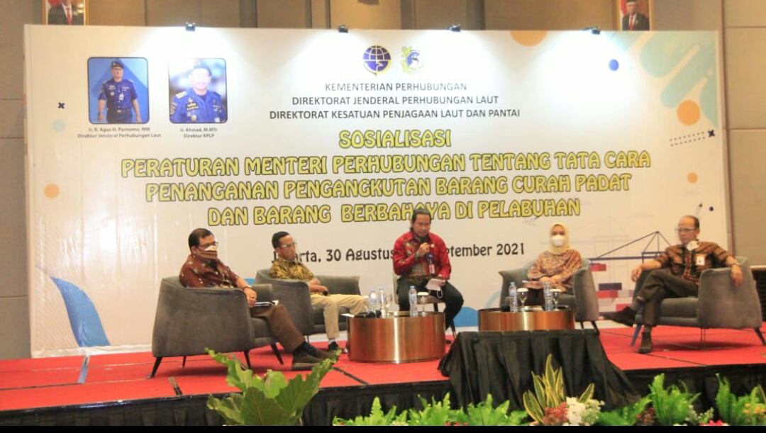 Direktorat Kesatuan Penjagaan Laut dan Pantai (KPLP) Direktorat Jenderal Perhubungan Laut Kementerian Perhubungan menggelar Sosialisasi Peraturan Menteri Perhubungan Nomor PM 6 Tahun 2021 tentang Tata Cara Penanganan dan Pengangkutan Muatan Curah Padat dan Peraturan Menteri Perhubungan Nomor PM 16 Tahun 2021 tentang Tata Cara Penanganan dan Pengangkutan Muatan Barang Berbahaya di Jakarta berlangsung 31 Agustus- 1 September 2021.