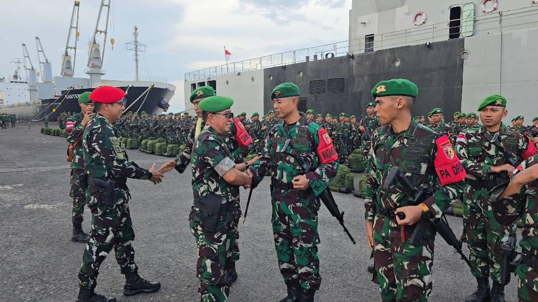 IWOSUMBAR.COM, DUMAI – Komandan Korem 032/Wira Braja Brigjen TNI Machfud, menyambut dengan penuh kebanggaan kepulangan Satuan Tugas (Satgas) Yonif 131/Brajasakti usai menuntaskan misi pengamanan perbatasan di Papua di Dermaga C Pelindo Dumai, Rabu (5/11/2025).