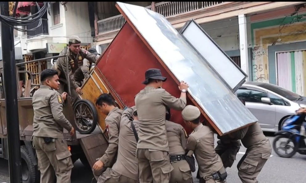 PADANG – Satuan Polisi Pamong Praja (Satpol PP) Kota Padang menertibkan sejumlah lapak Pedagang Kaki Lima (PKL) yang kedapatan melanggar aturan dan mengganggu ketertiban umum, Jumat (14/11/2025). Kali ini penertiban berlangsung di beberapa titik kecamatan dengan dukungan penuh dari Tim SK4 Pemko Padang.