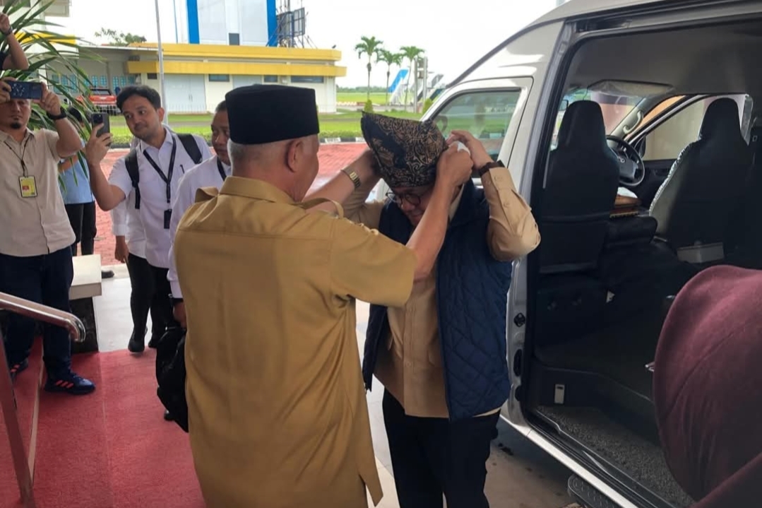 “Selamat datang di Ranah Minang, Pak Menteri,” ujar Mahyeldi, sekaligus memasangkan deta kepada Mendag. Mahyeldi menjelaskan bahwa agenda Mendag di Sumbar meliputi peninjauan harga sembako di Pasar Raya Padang dan pelepasan ekspor gambir Sumbar ke India.