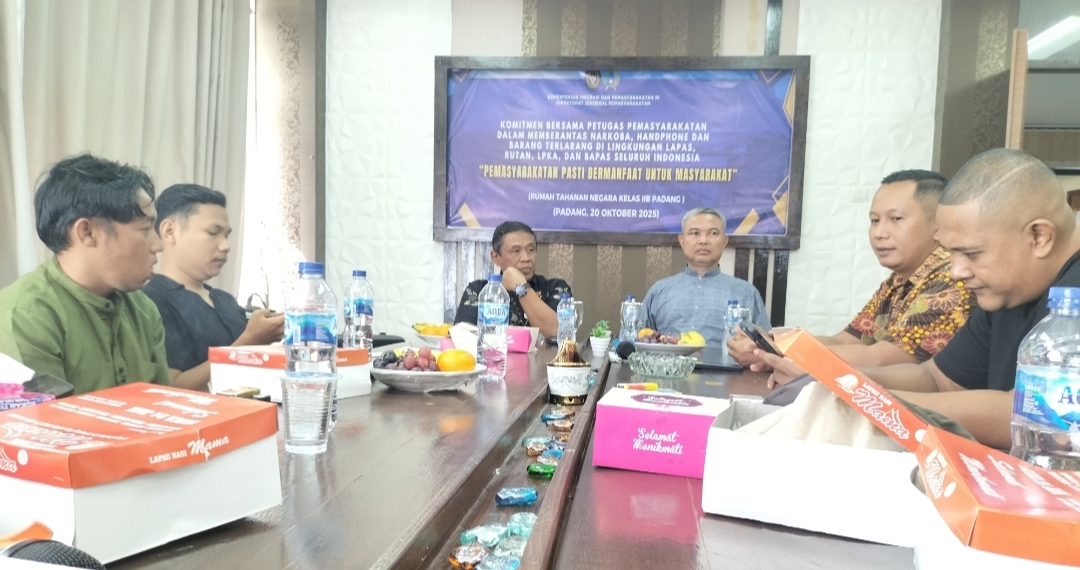 PADANG -Kantor Wilayah (Kanwil) Direktorat Jenderal Pemasyarakatan (Ditjenpas) Sumatera Barat menggelar temu ramah bersama awak media di Rumah Tahanan Negara (Rutan) Kelas IIB Padang, Jumat (21/11). Kegiatan tersebut dihadiri Kepala Kanwil Ditjenpas Sumbar, Kunrat Kasmiri,