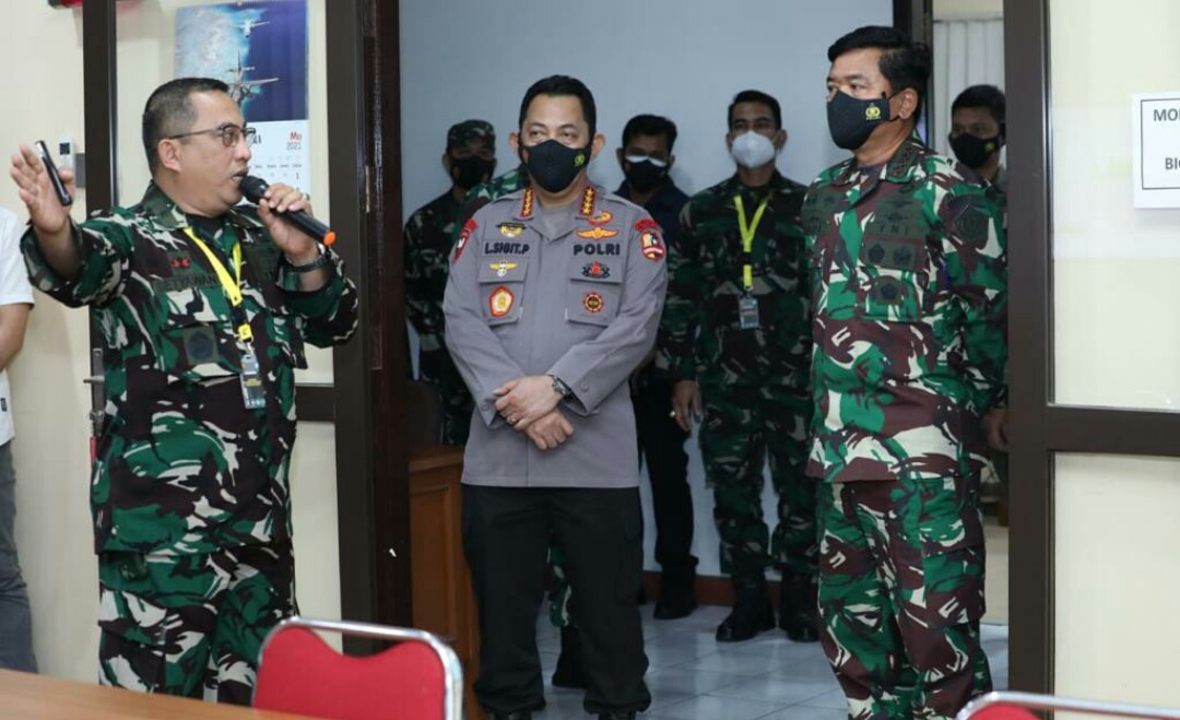 IWOSUMBAR.COM, JAKARTA – Panglima TNI Marsekal TNI Hadi Tjahjanto bersama Kapolri Jenderal Polisi Listyo Sigit Prabowo meninjau fasilitas pendidikan di Sekolah Staf dan Komando (Sesko) Tentara Nasional Indonesia di Lembang Bandung, Jawa Barat, Kamis (20/5/2021).