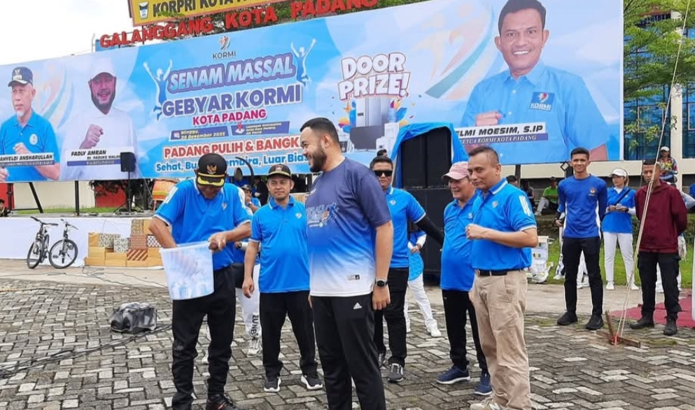 PADANG – Ribuan warga Kota Padang tumpah ruah mengikuti Senam Massal Gebyar KORMI Kota Padang yang digelar di Lapangan Apeksi, Kompleks Balai Kota Aie Pacah, Minggu (28/12/2025). Kegiatan ini berlangsung semarak dengan mengusung slogan “Sehat, Bugar, Gembira, Luar Biasa.”