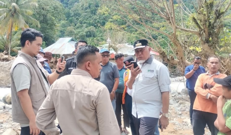 PADANG – Gubernur meninjau lokasi terdampak bencana hidrometeorologi di Nagari Pancuang Taba, Kecamatan IV Nagari Bayang Utara, Kabupaten Pesisir Selatan, Kamis (1/1/2026) untuk memastikan kondisi lapangan sekaligus mengecek kesiapan penanganan pascabencana.