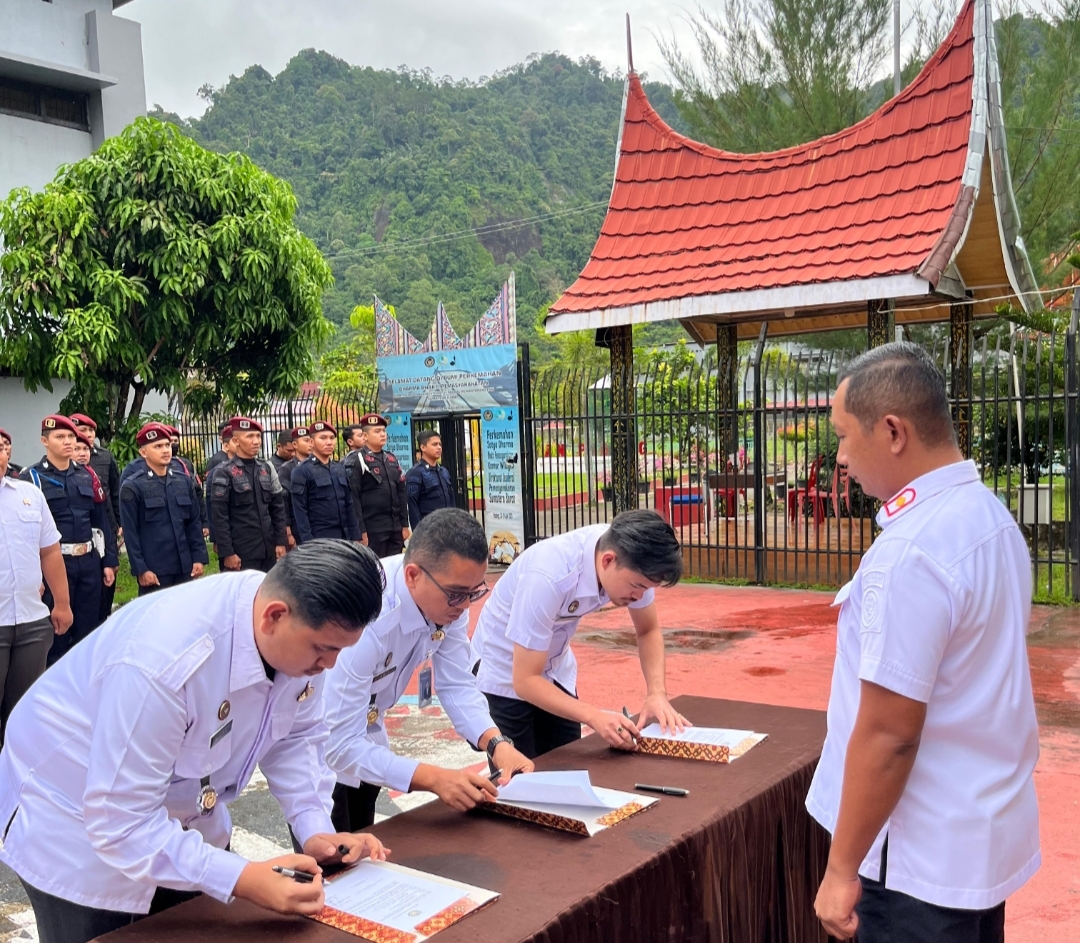 PADANG — Rumah Tahanan Negara (Rutan) Kelas IIB Padang komitmen peningkatan kinerja aparatur dengan melaksanakan penandatanganan Deklarasi dan Perjanjian Kinerja Pegawai Kementerian Imigrasi dan Pemasyarakatan Tahun 2026, Kamis (8/1/2026).