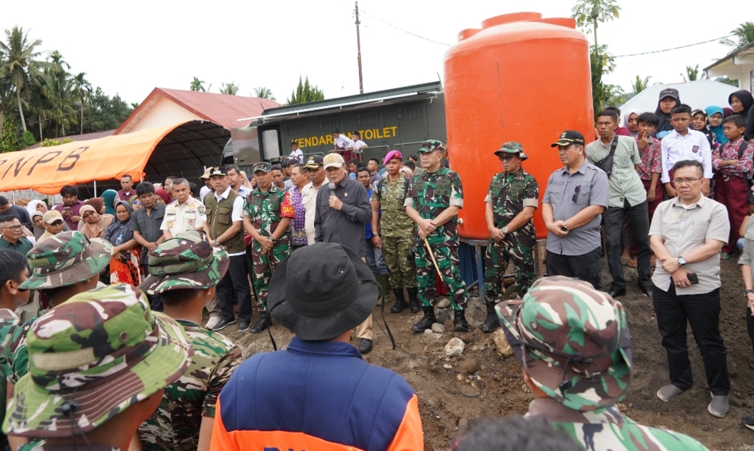 Danrem 032/Wbr Brigjen Machfud menegaskan komitmen TNI untuk terus hadir membantu masyarakat yang terdampak bencana. Ia menyampaikan bahwa seluruh jajaran Korem dikerahkan secara maksimal guna mempercepat pemulihan.