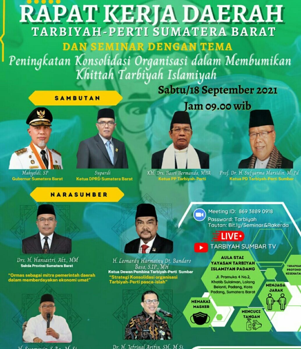 Rapat Kerja Daerah akan dilaksanakan pada tanggal 18 September 2021. Rapat Kerja Daerah akan dibuka oleh Gubernur Sumatera Barat secara virtual, di mana juga akan didahului dengan sambutan yang akan disampaikan oleh Ketua Umum Pengurus Pusat Persatuan Tarbiyah Islamiyah (Tarbiyah-Perti) dan Ketua DPRD Provinsi Sumatera Barat.