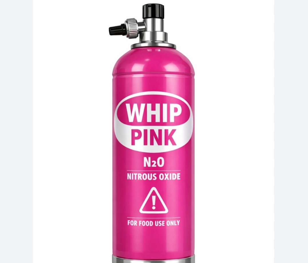 Whip Pink merupakan produk berbentuk tabung kecil berisi gas Nitrous Oxide (N₂O) atau dikenal sebagai gas dinitrogen oksida. Dalam dunia kuliner, gas ini berfungsi sebagai propellant atau pendorong untuk membuat whipped cream agar mengembang dan memiliki tekstur lembut.