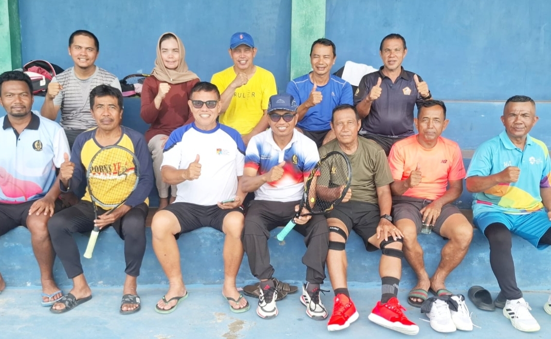 PADANG- Petinggi PELTI Pengprov Sumbar dan PELTI Pengkot Padang laga persahabatan menyonsong bulan suci Ramadhan 2026/1447 H di Lapangan Tenis Sekora berlangsung imbang 5-5, Senin (16/2).