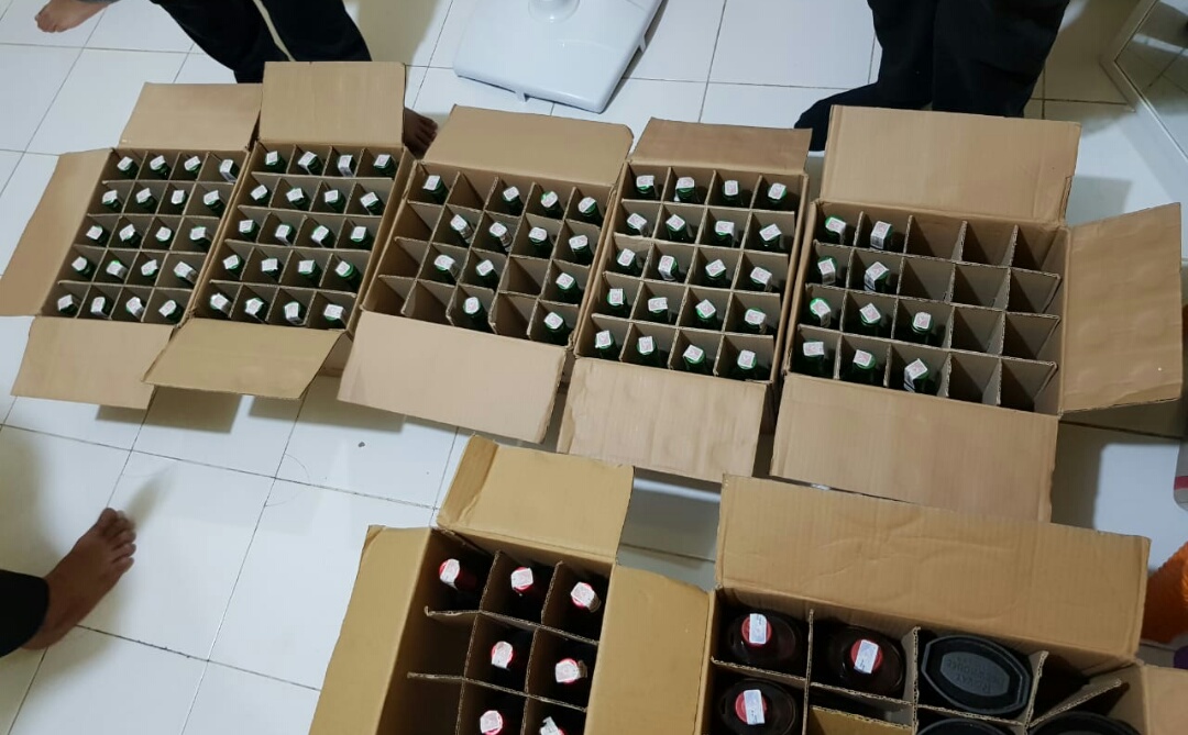 Saat diamankan, ditemukan barang bukti seratusan botol minuman beralkohol berbagai merk, diantaranya 8 Finca Roberto Syrah 750 ml alkohol 13,5%, 4 Royal Brew House 750 ml alkohol 45%, 5 Royal Brew House Blended Whisky 750 alkohol 40%, 83 Green Royale 350 ml alkohol 16%, dan 9 White Royale 350 ml alkohol 20%.