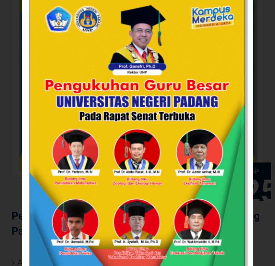 IWOSUMBAR.COM, PADANG – Universitas Negeri Padang (UNP) kembali mengukuhkan enam (6) orang guru besar (gurbes) (profesor) Senin (27/9/2021). Sebelumnya pada bulan Mei lalu juga telah mengukuhkan 4 orang gurbes.