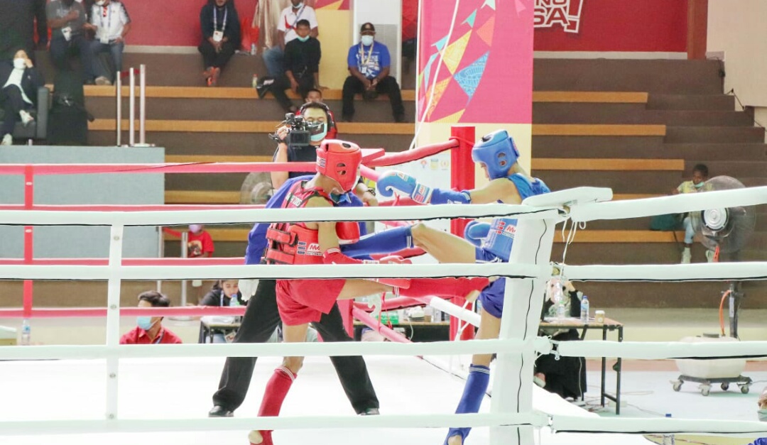 IWOSUMBAR.COM, JAYAPURA – Atlet Muay Thai Sumatera Barat, Gilang Dwi Fajri harus puas memperoleh medali perunggu pada PON XX Papua 2021, di GOR STT Gidi, Kabupaten Jayapura, Kamis (30/9).