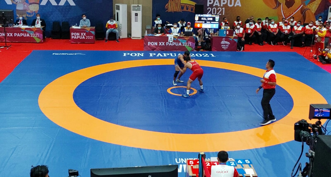 IWOSUMBAR.COM, PAPUA -Atlet gulat Sumatera Barat Heru Fernandes menyamai capaian di PON sebelumnya di Jawa Barat dengan meraih medali perak usai kalah dari atlet Kalimantan Selatan Arbiansyah dengan skor 8-0 di partai puncak cabor gulat kelas 65 kilogram gaya bebas putra yang digelar di GOR Futsal Dispora Merauke, Senin.