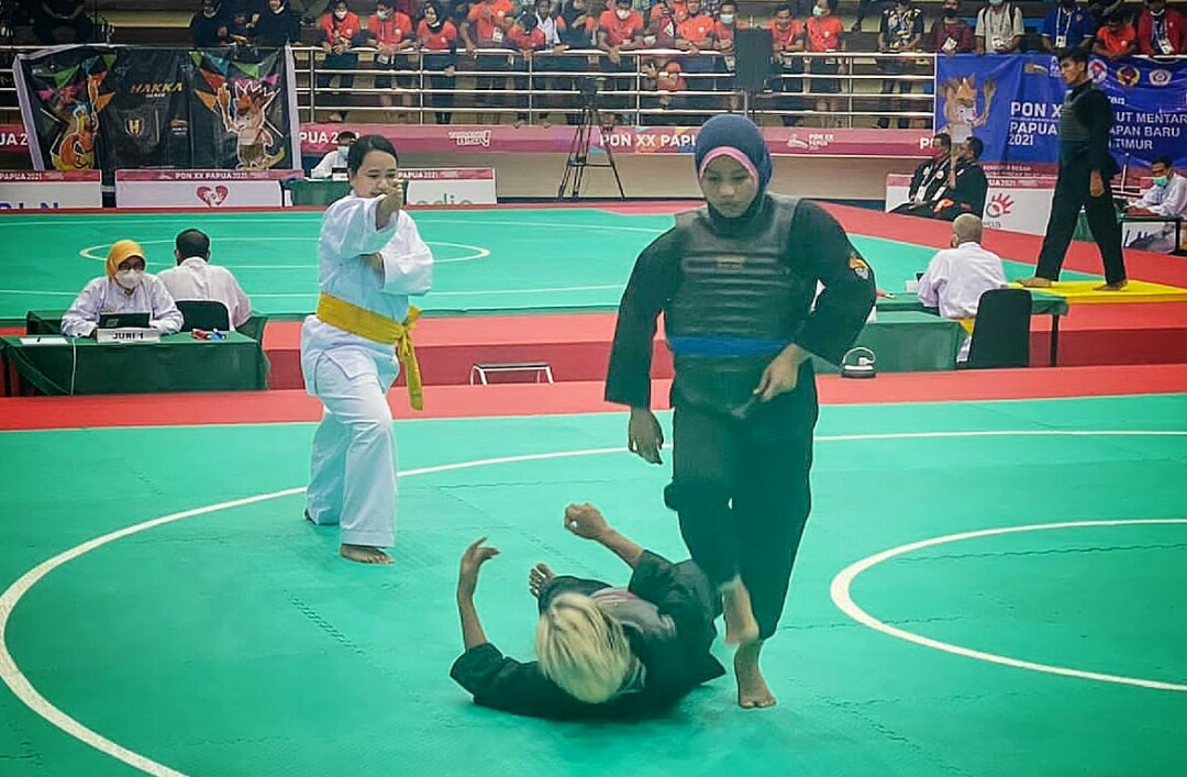 IWOSUMBAR.COM, JAYAPURA – Winda Nova Yelni Pesilat asal Sumatera Barat berhasil menambah medali emas untuk Sumatera Barat setelah berhasil menjadi jawara dikelasnya pada PON XX Papua 2021.