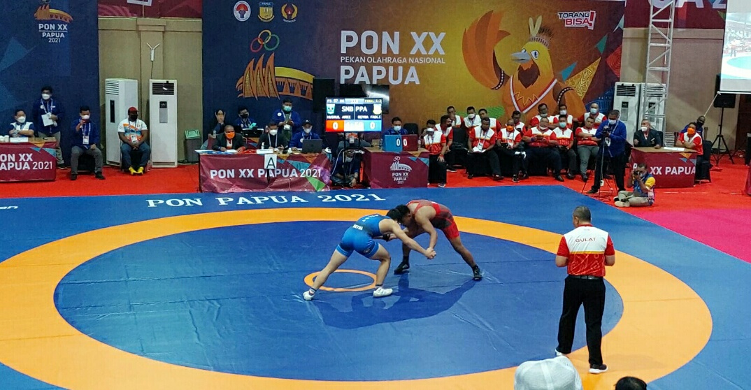 Hasil ini membawa Husnul menantang tuan rumah Papua di babak final Gulat kelas 97 kilogram gaya bebas putra.