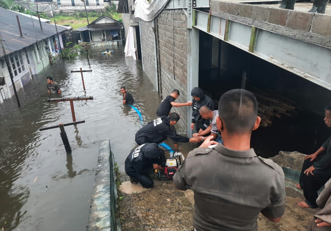 Diantaranya berkoordinasi dengan unsur TNI-POLRI, Satpol-PP, Dinas Pemadam Kebakaran (Damkar), Dinas Dosial, Dinas Perumahan Dan Kawasan Permukiman Dan Lingkungan Hidup (Perkim LH) serta Masyarakat begotong royong melakukan penyedotan air yang menggenangi rumah warga dan membersihkan saluran drainase yang tersumbat.