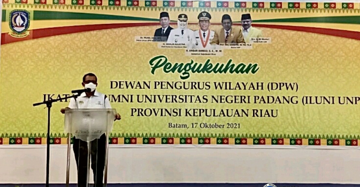Iwosumbar.com, Batam- Rektor Universitas Negeri Padang (UNP) Prof. Ganefri, Ph.D, Minggu/ 17 Oktober 2021, kukuhkan pengurus Ikatan Alumni (Iluni) UNP DPW Kepulauan Riau (Kepri).