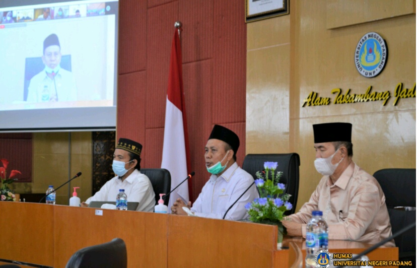 Acara dilaksanakan di Ruang Sidang Senat Lt.4 Gedung Rektorat UNP dan disiarkan secara langsung melalui youtube UNP Video Streaming.