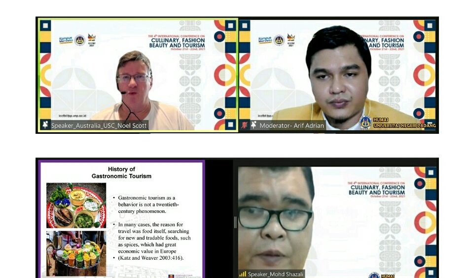 Iwosumbar.com, Padang- Untuk yang ke-4 kalinya Universitas Negeri Padang melalui Fakultas Pariwisata dan Perhotelan kembali mengadakan International Web-Conference on Culinary, Fashion, Beauty, and Tourism (ICCFBT). Kamis (21/10/2021).