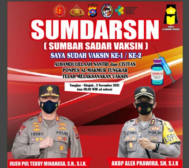 Kepolisian Daerah (Polda) Sumbar menggandeng Pondok Pesantren Al-Makmur Tungkar, Kabupaten Limapuluh Kota untuk menyukseskan vaksinasi tersebut.