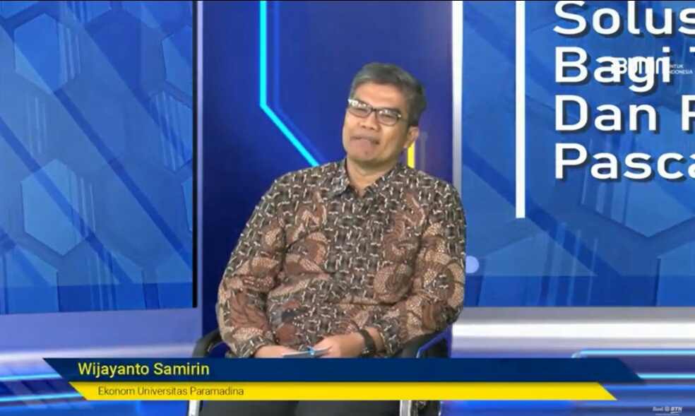 Iwosumbar.com, Jakarta -Dalam Webinar yang digelar Bank Tabungan Negara (BTN) dengan tema “Perumahan Rakyat Solusi Bagi Tantangan Sosial dan Perlambatan Ekonomi Pasca Pandemi” Ekonom Universitas Paramadina Wijayanto Samirin mengatakan perlu adanya solusi konkrit dan tepat dalam mengatasi kondisi ekonomi pasca pandemi Covid-19. Kegiatan tersebut berlangsung secara virtual pada Kamis, (11/11).