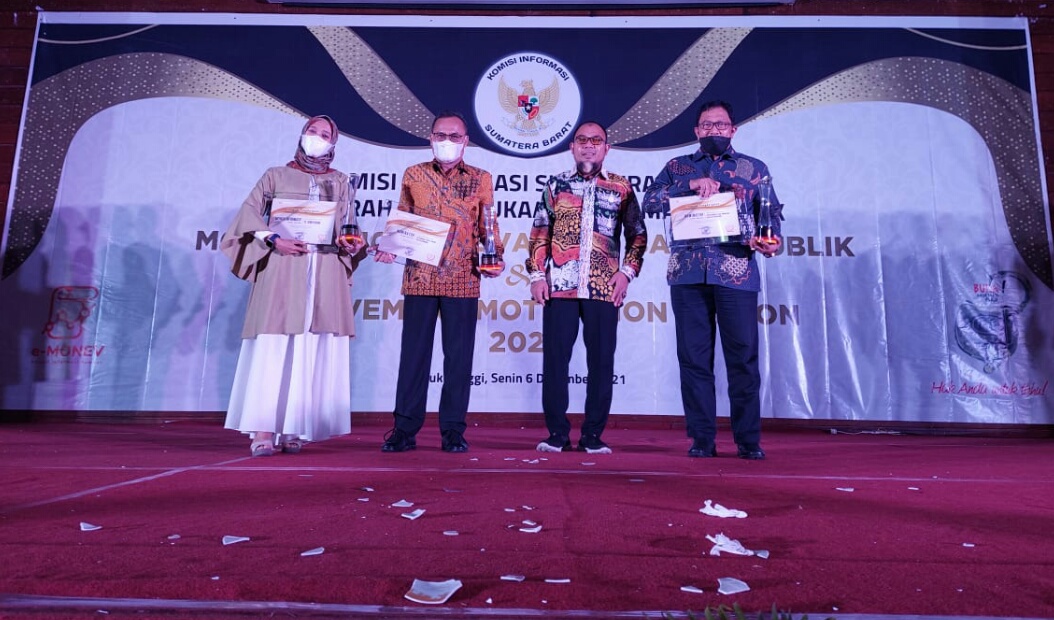 Penyerahan penghargaan diberikan pada acara Anugerah Keterbukaan Informasi Publik, di Balai Sidang Bung Hatta, Novotel Bukittinggi, Senin (6/11/ 2021).