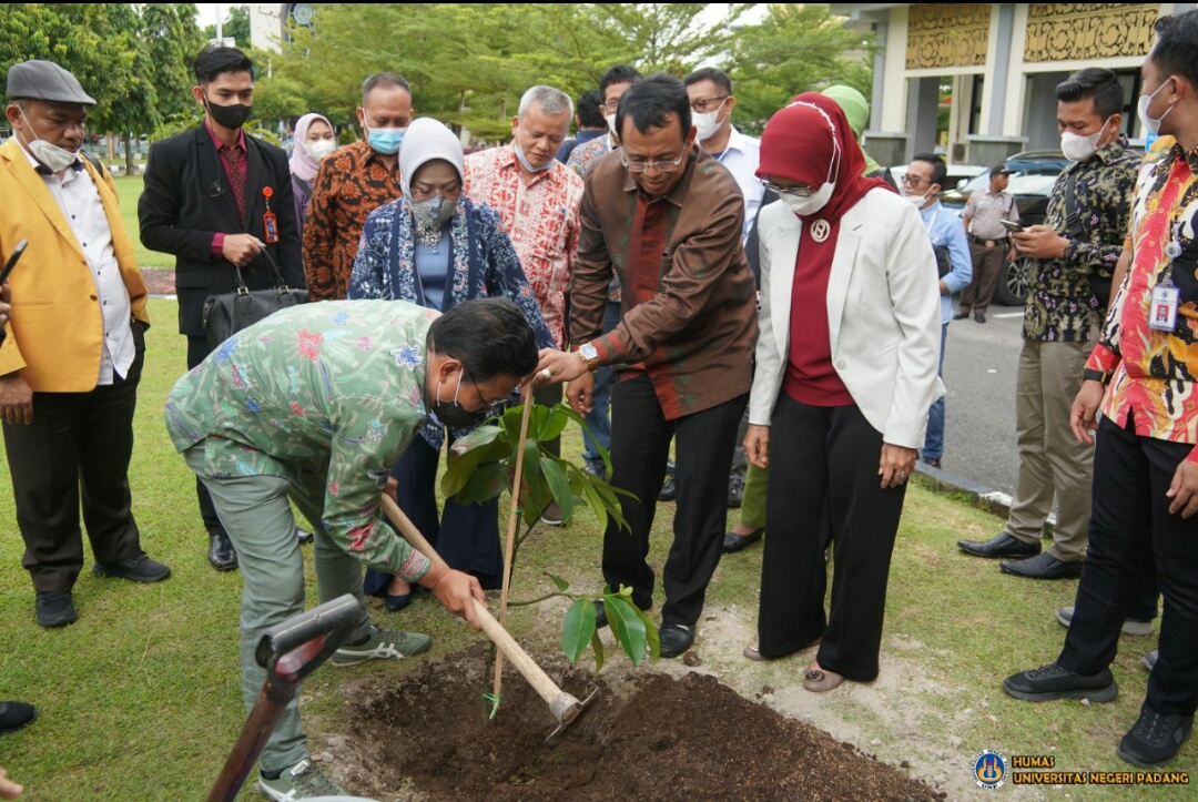 Menteri A. Halim Iskandar juga berkesempatan melakukan penanaman pohon di kampus UNP. Pada kunjungan di Sumbar, Menteri Kemendes PDTT dijadwalkan juga berkunjung ke kampus Unand, UNP, dan Kabupaten Pesisir Selatan. (Er/ Hum).