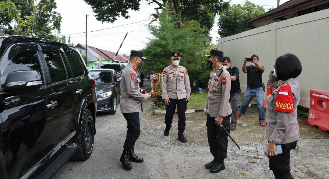 Kapolda didampingi PJU Polda Sumbar diantaranya Karoops Kombes Djadjuli Kabiddokes drg. Lisda Cancer M.Biotech, Dirlantas Yofie Girianto Putro, Kabidkum Nina Febri Linda dan Kabid Propam Edi Suroso.