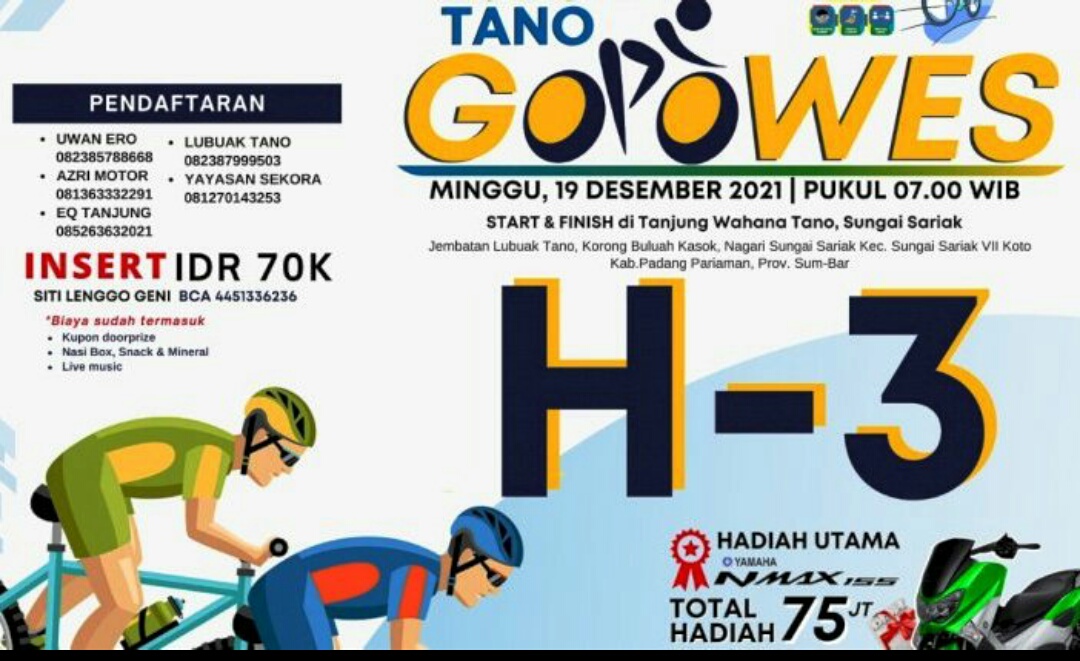 Iwosumbar.com, Padang Pariaman – Menjelang pelaksanaan Tano Fun Bike Adventure Family Fun Bike H-3, yang akan dihelat pada Minggu (19/12/2021). Tercatat sudah 1000 peserta gowes yang ikut mendaftar