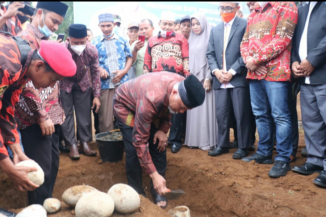 IWOSUMBAR.COM, PESSEL -Gubernur Mahyeldi, didampingi Wakil Bupati Pesisir Selatan (Pessel) melakukan peletakan batu pertama dimulainya pembangunan kampus perguruan Islam Ar Risalah 2 pada minggu (23/1/22) di Airpura, Pessel.