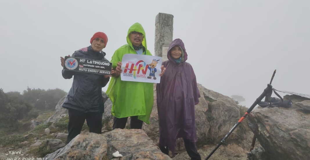 Dari puncak Gunung Latimojong, Dar Edi Yoga, Onaria Fransisca dan Wariani Krishnayanni mengucapkan Selamat Hari Pers Nasional 2022. (Ril/Pwi-Pusat)
