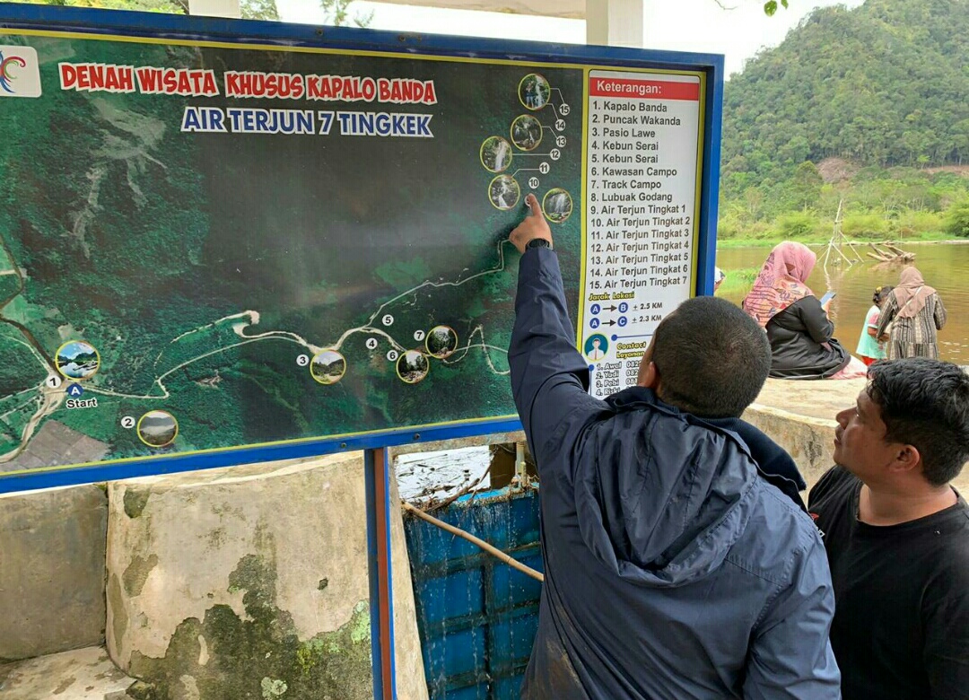 “Kami menyediakan dua jalur wisata alam bagi wisatawan yang ingin mencoba experience menuju air terjun, jalur yang pertama mendaki gunung dan yang kedua menggunakan sepeda gunung,” terang Adi, selaku ketua Pokdarwis Kapalo Banda.