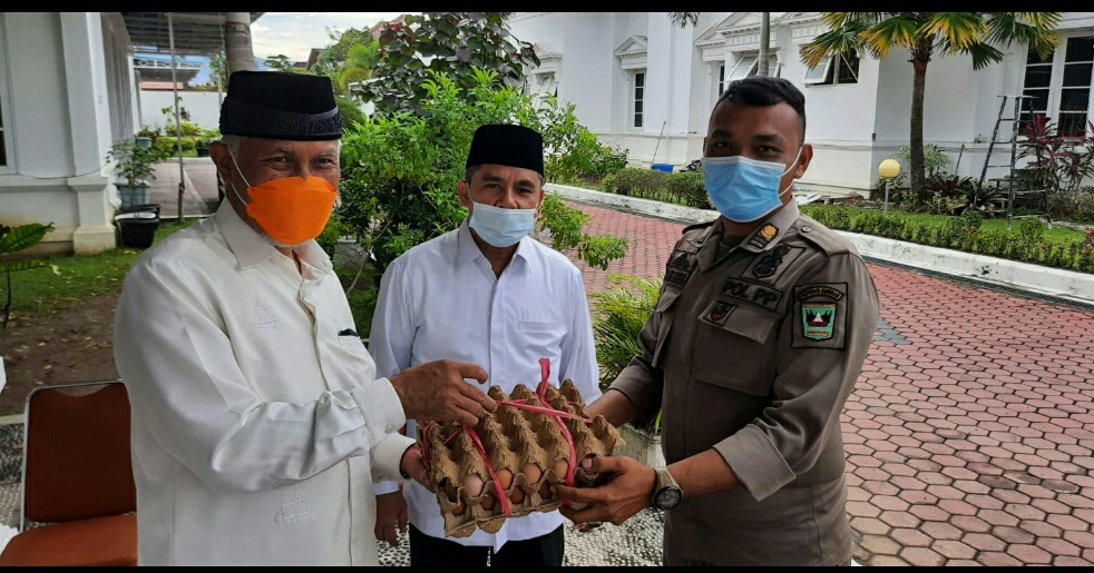 Selain itu, dalam kesempatan yang sama, gubernur juga membagikan telur untuk 148 anggota Satpol dan Damkar Provinsi Sumbar, masing-masing mendapat dua tray telur.