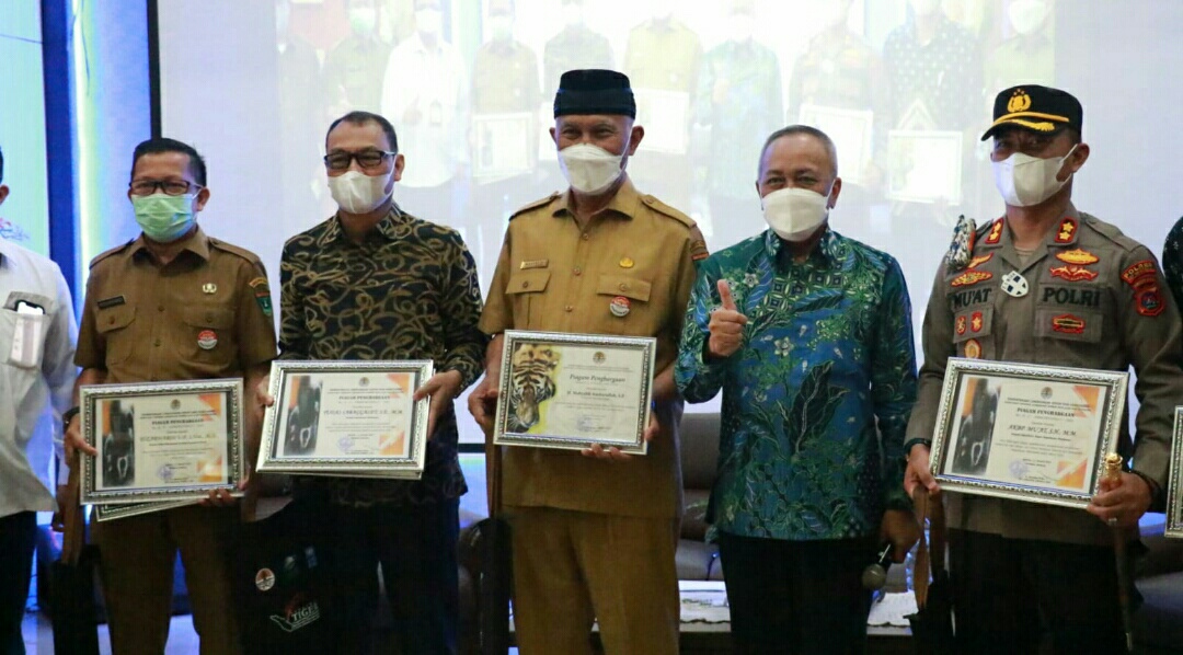 IWOSUMBAR.COM, PADANG – KEMENTRIAN KEHUTANAN dan LINGKUNGAN HIDUP Senin (14/2/2022) memberikan penghargaan kepada gubernur Sumatera Barat atas peran serta dan dukungan terhadap konservasi Harimau Sumatra.