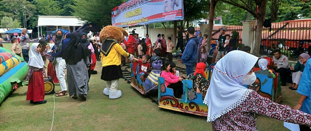 IWOSUMBAR.COM, PADANG – Polda Sumbar memberikan sejumlah hiburan dalam gelaran Sumbar Sadar Vaksin (SUMSARSIN). Terutama untuk anak usia 6 hingga 11 tahun. Diantaranya permainan sulap, istana balon dan boneka badut serta kerera api anak.
