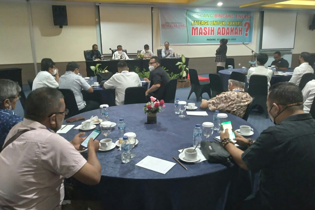 Diskusi turut dihadiri Pengamat Ekonomi Defiyan Cori, serta dari Direskrimsus Polda Sumbar dan puluhan awak media di Padang.