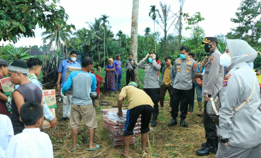 Ke lokasi gempa Kabid Humas dan Kabid dokkes menyerahkan bantuan sembako, berupa mie instan dan beras, makanan ringan dan air mineral kepada warga yang terdampak langsung korban gempa.