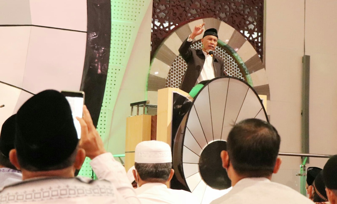 “Manajemen yang tidak setuju terhadap konversi bank Nagari menjadi bank syariah, sebaiknya segera mengundurkan diri, “Tegas gubernur Mahyeldi dalam kegiatan Subuh bulanan ASN lingkup Pemprov Sumbar, di Masjid Raya Sumbar, Minggu (6/3).