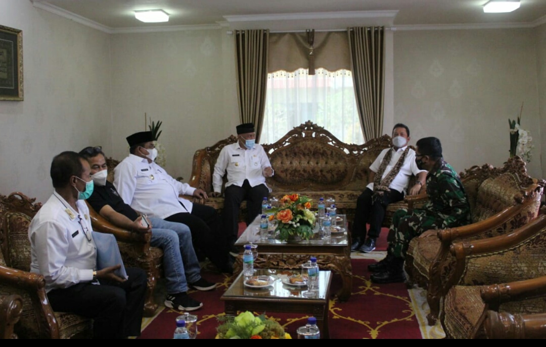 Gubernur Mahyeldi Bersama pejabat lainya sempatkan berbincang terkait percepatan pembangunan kemajuan bidang Kelautan dan Perikanan Sumbar di ruang VIP BIM, Rabu (2/6/2021).