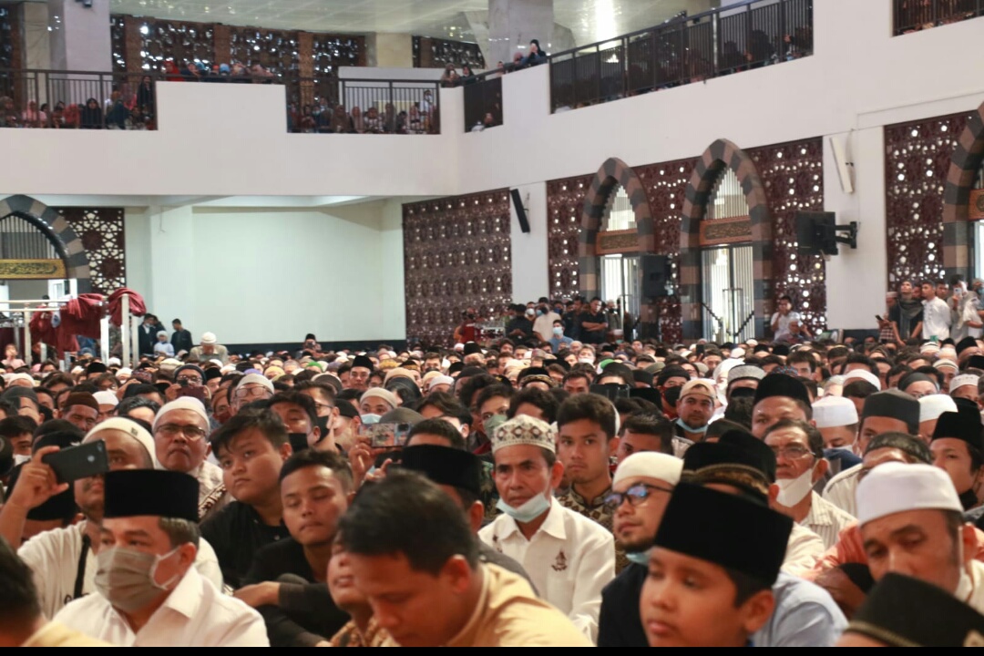 Sejak siang, puluhan ribu jemaah tampak memadati masjid kebanggaan Ranah Minang tersebut.