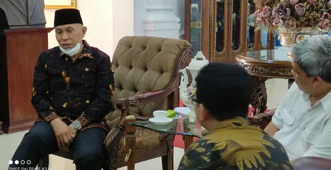 IWOSUMBAR.COM, Padang -Buya Mahyeldi selaku Gubernur Sumbar di tengah seabrek agenda ke daerahan, Kamis (3/6-2021) berkenan menerima Ketua dan Sekretaris OC Kongres IKA Unand di Istana Gubernur Jalan Sudirman Padang.