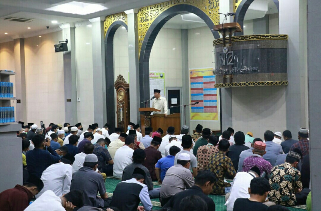 Rektor UNP, Prof. Ganefri, menyampaikan terimakasih dan rasa bangga atas kehadiran Gubernur Sumbar beserta rombogan Tim Safari Ramadhan ke Masjid Raya Al-Azhar.