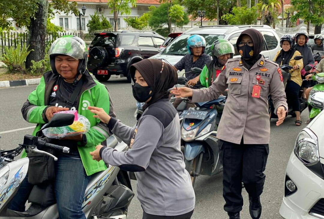 “Hari ini kita bagikan sebanyak 250 paket takjil dan juga nasi kotak. Kita bagikan kepada fakir miskin dan ojol Padang yang tengah melintas,” kata AKBP Widya Aziz.