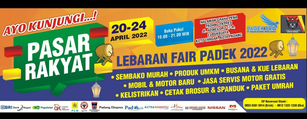 Bazar Padang Ekspres (Padek) jelang Lebaran ini diadakan pada 20-24 April dari pukul 10.00 sampai pukul 21.00 di Halaman Gedung Graha Pena Padang Ekspres Jalan Adinegoro No. 17 A Lubukbuaya, Kecamatan Kototangah, Kota Padang.
