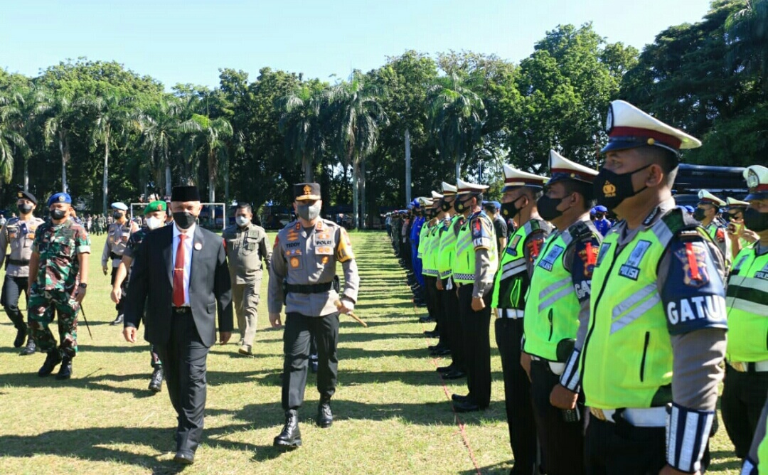 Kapolda Sumbar Irjen Pol Teddy Minahasa P, SH, S.Ik. MH Pimpin pelaksanaan Apel Gelar Pasukan Operasi Ketupat Singgalang, dilangsungkan Jumat (22/4) di RTH Imam Bonjol Padang.