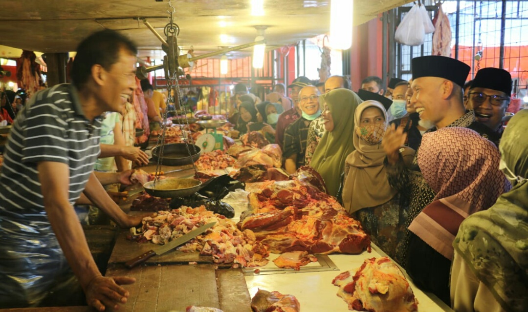 Dikesempan itu Gubernur menyambangi langsung beberapa pedagang kebutuhan pokok seperti beras, daging, cabai, telur, dan minyak goreng.